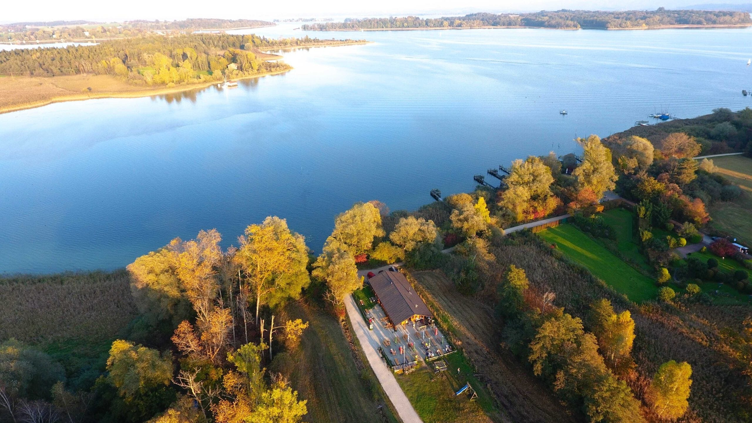Unsere Hütte liegt idyllisch am Uferweg zwischen dem Erlebnisbad Prienavera und der Schafwaschener Bucht. Viele Gäste erreichen uns zu Fuß oder mit dem Fahrrad entlang des Chiemseeufers und verbinden den Besuch gerne mit einem Spaziergang oder einer Radtour.