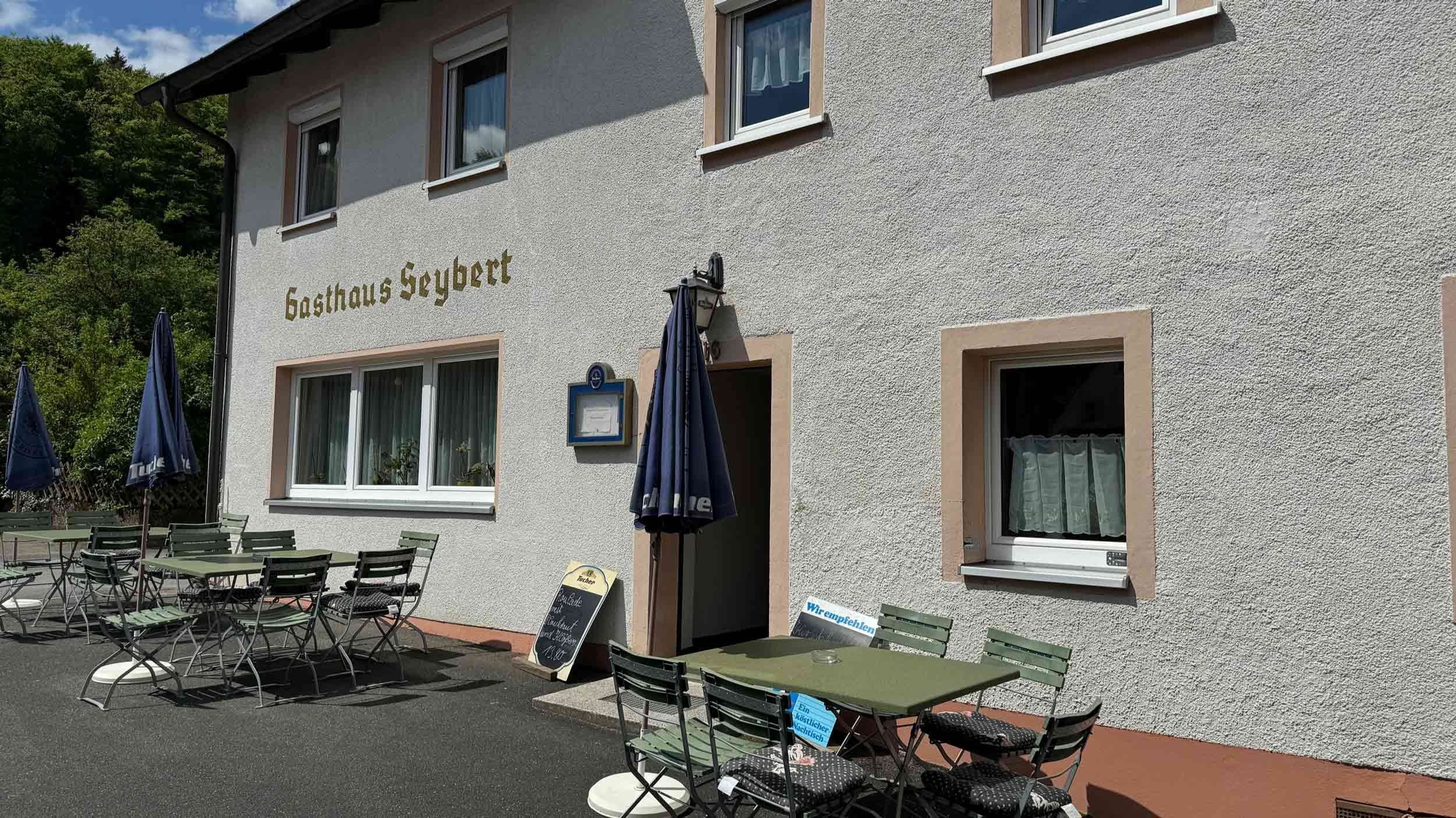 Fernab von Lärm und Verkehr liegt das Gasthaus Seybert am Ortsrand von Trainmeusel. Von hier aus bietet sich dem Gast ein wohltuender Ausblick auf unser malerisches Mittelgebirge.